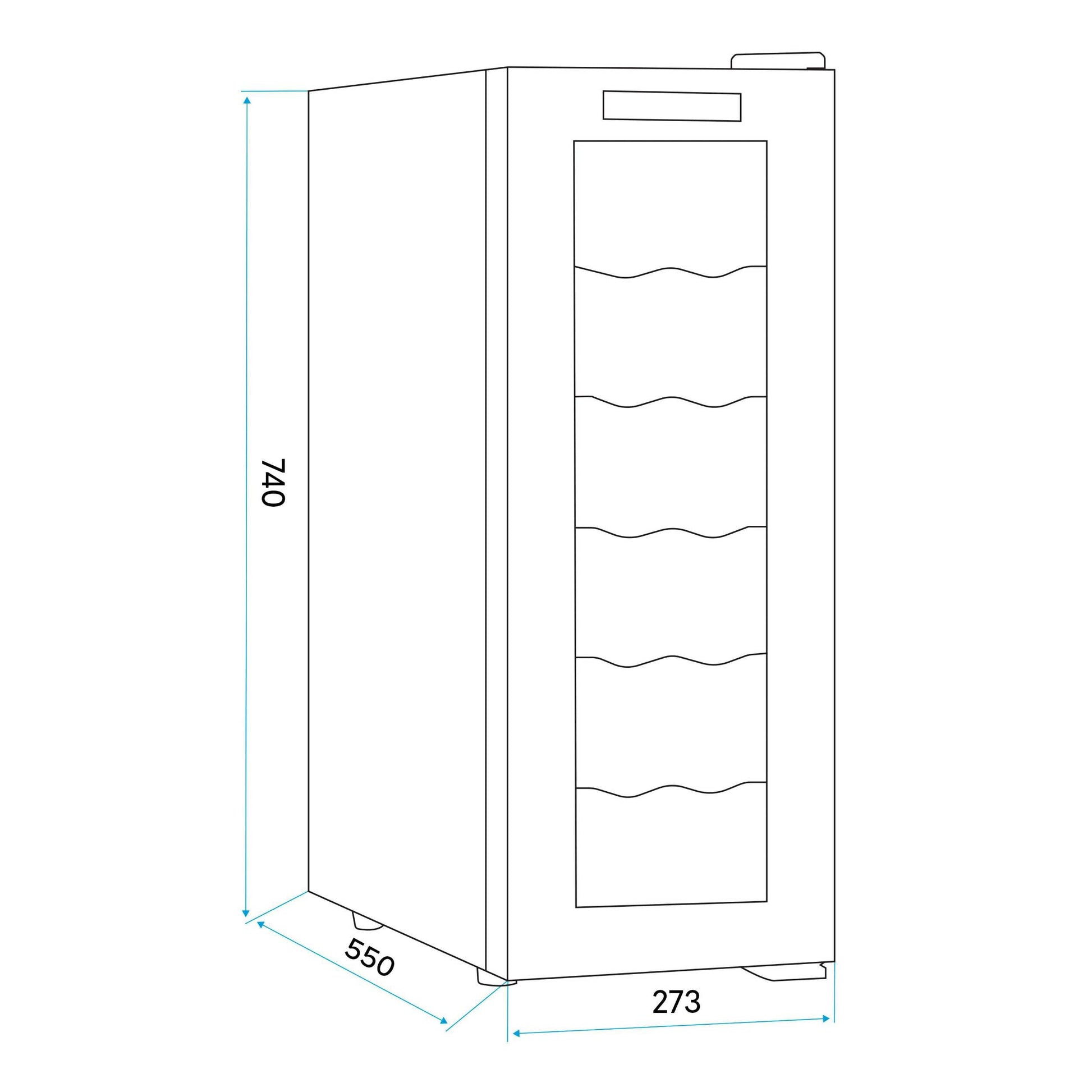 Baridi Black 12 Bottle Wine Fridge Cooler, Super Quiet 25dB, Touch Control, LED - DH73
