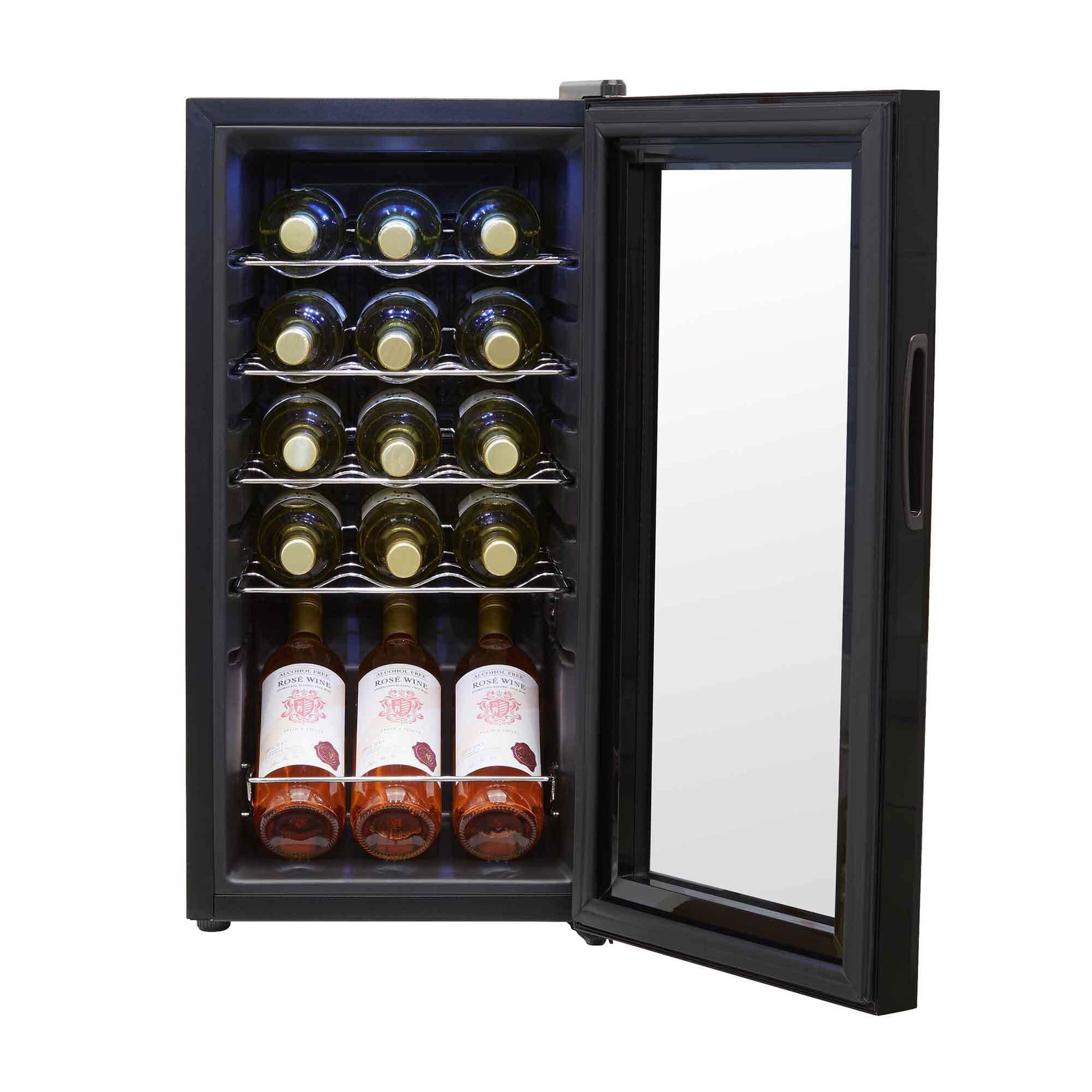 - Sleek & Compact Design - Attractive tempered mirror glass door helps to reflect UV light and protect your wine while letting you see the contents at a glance.