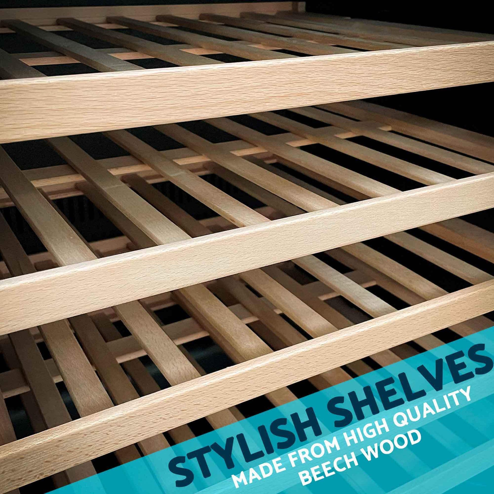 - Flexible Storage - Removable waved metal shelves with space for up to 12 bottles of wine. Accommodates Max. Bottle Height: 330mm.