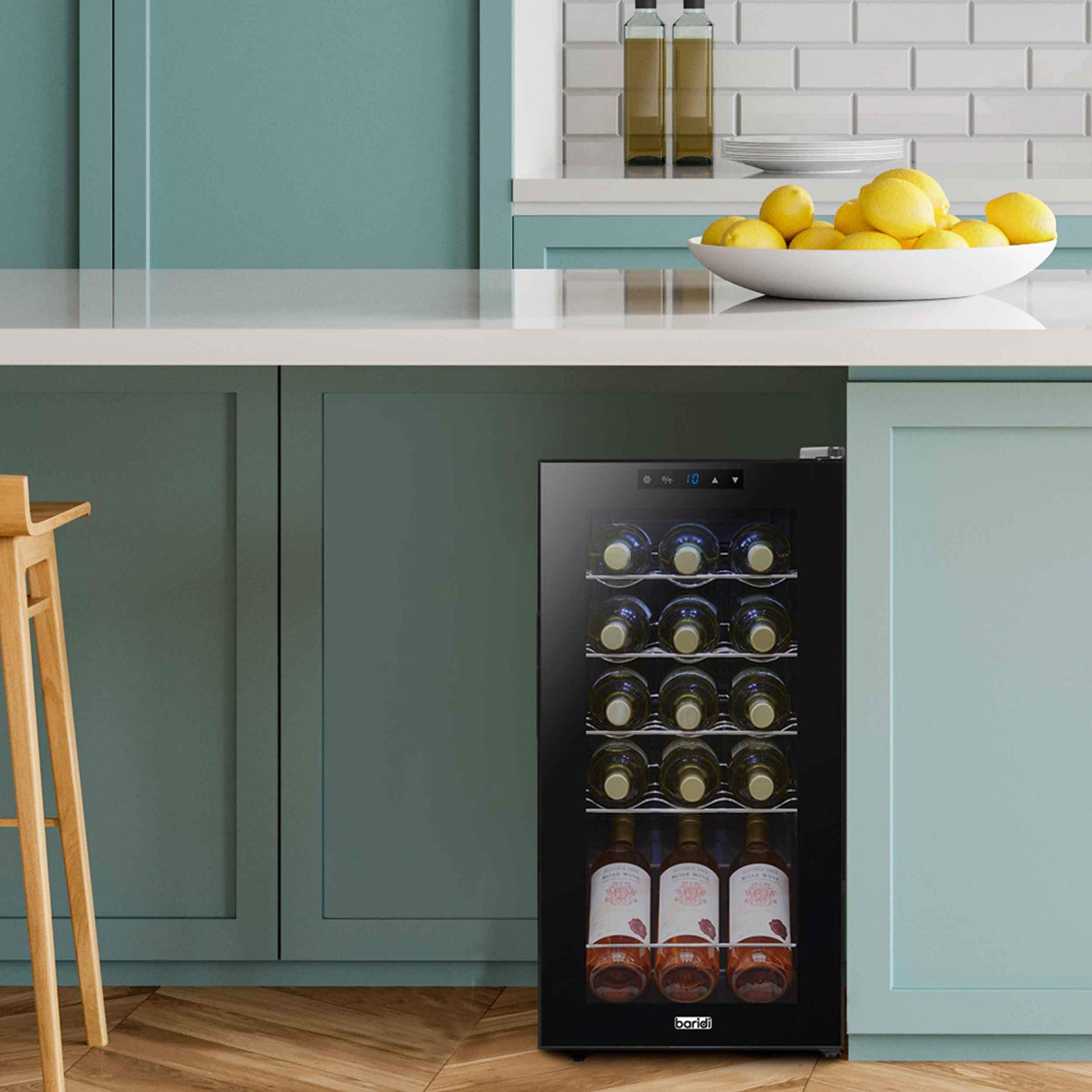 - Thermoelectric Cooling - Eliminates humming, uses less electricity and causes less vibration, making it ideal for the home environment. Range between 12-18°C, controlled by touch screen controls.