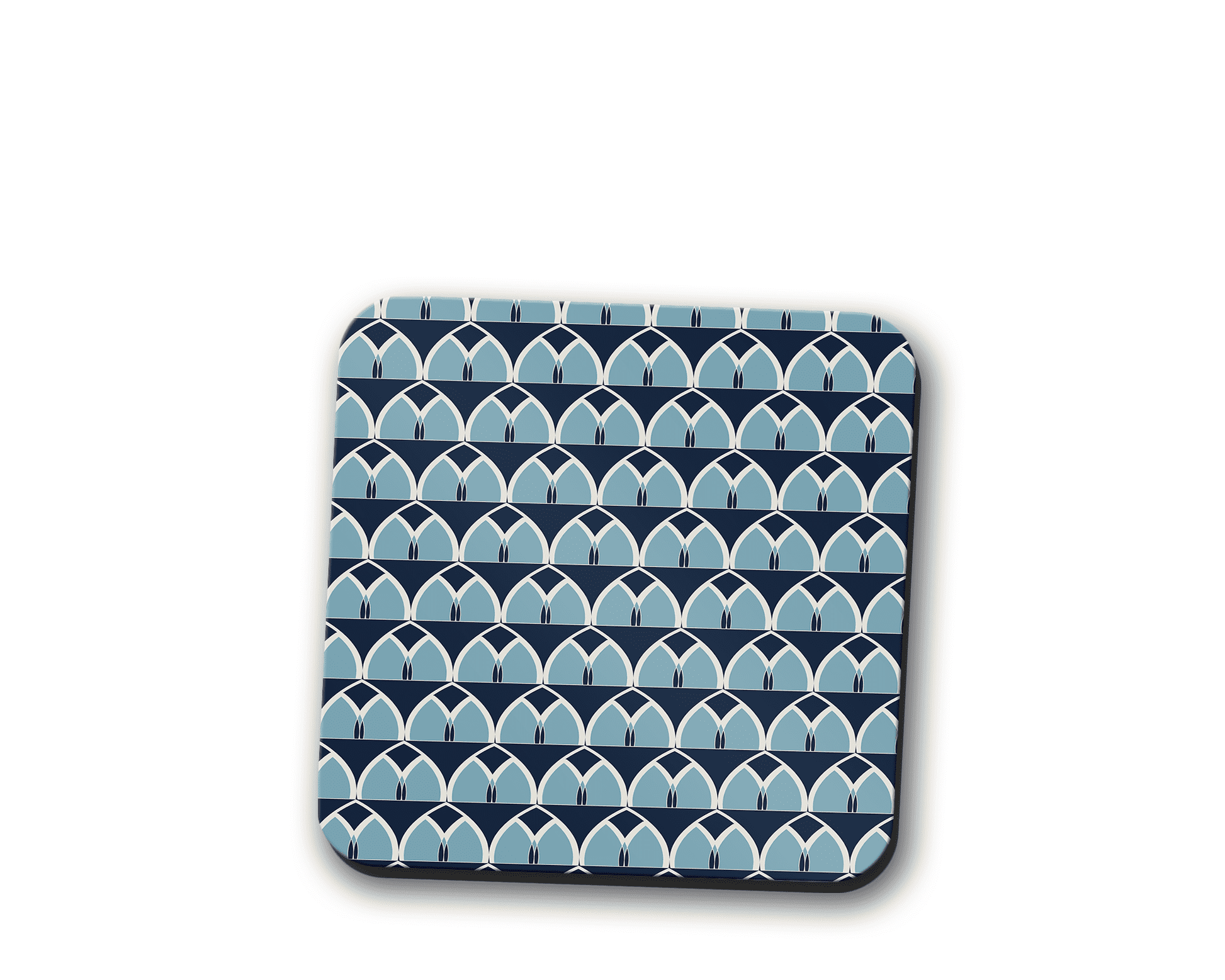 These blue geometric arches design coasters are available either as a single coasters or as a set of 4. This pattern is inspired by a love of architecture and is drawn using Shadowbright's clean and simple style.