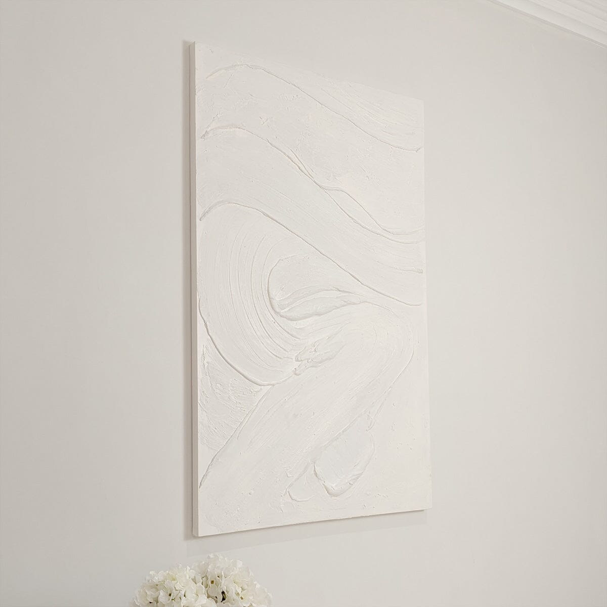 This artwork features a soothing cream palette with abstract textures, creating a serene and elegant ambiance.
