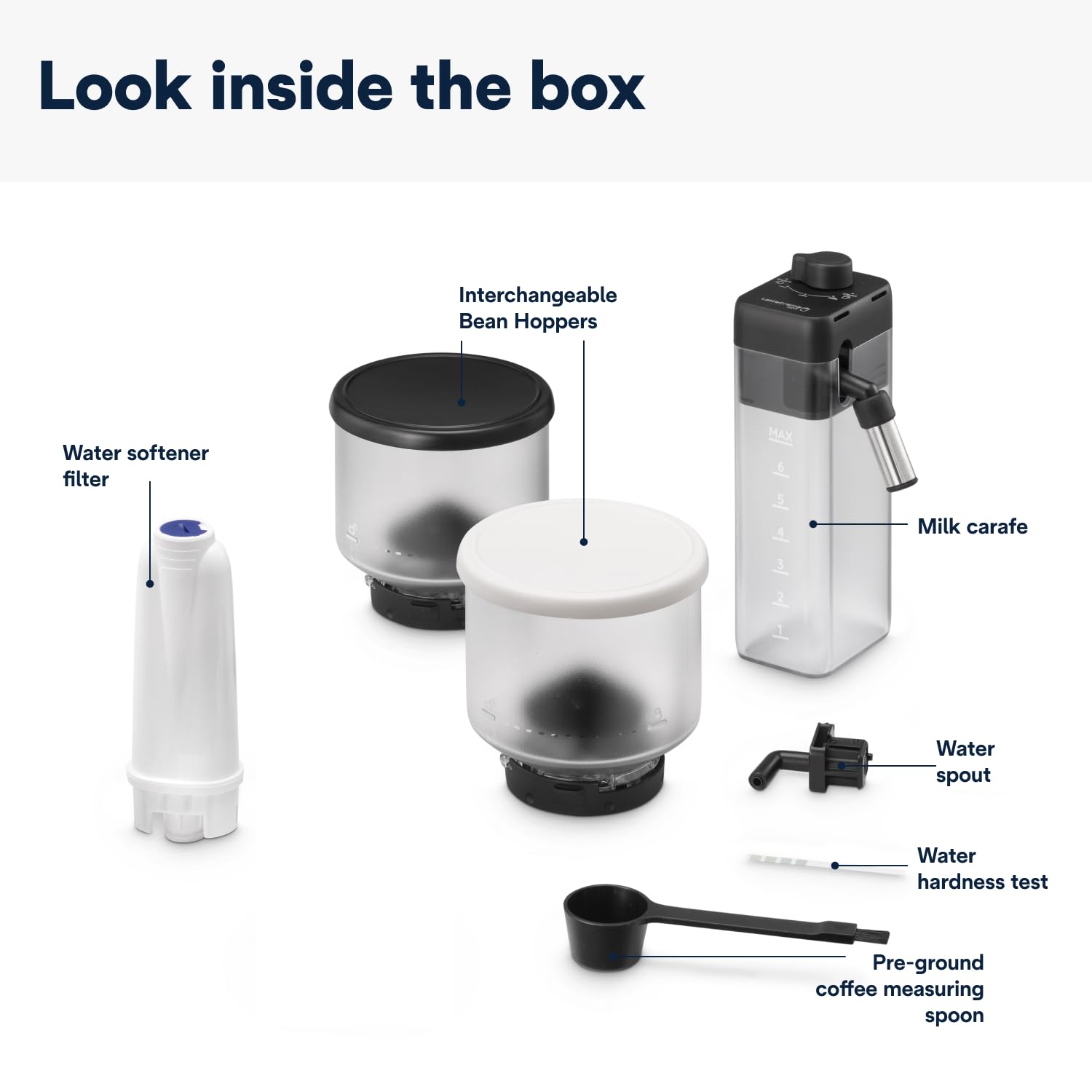 - EXPLORE BEAN VARIETIES: this De'Longhi coffee machine includes two interchangeable 250g bean hoppers that let you easily switch between different varieties of coffee beans