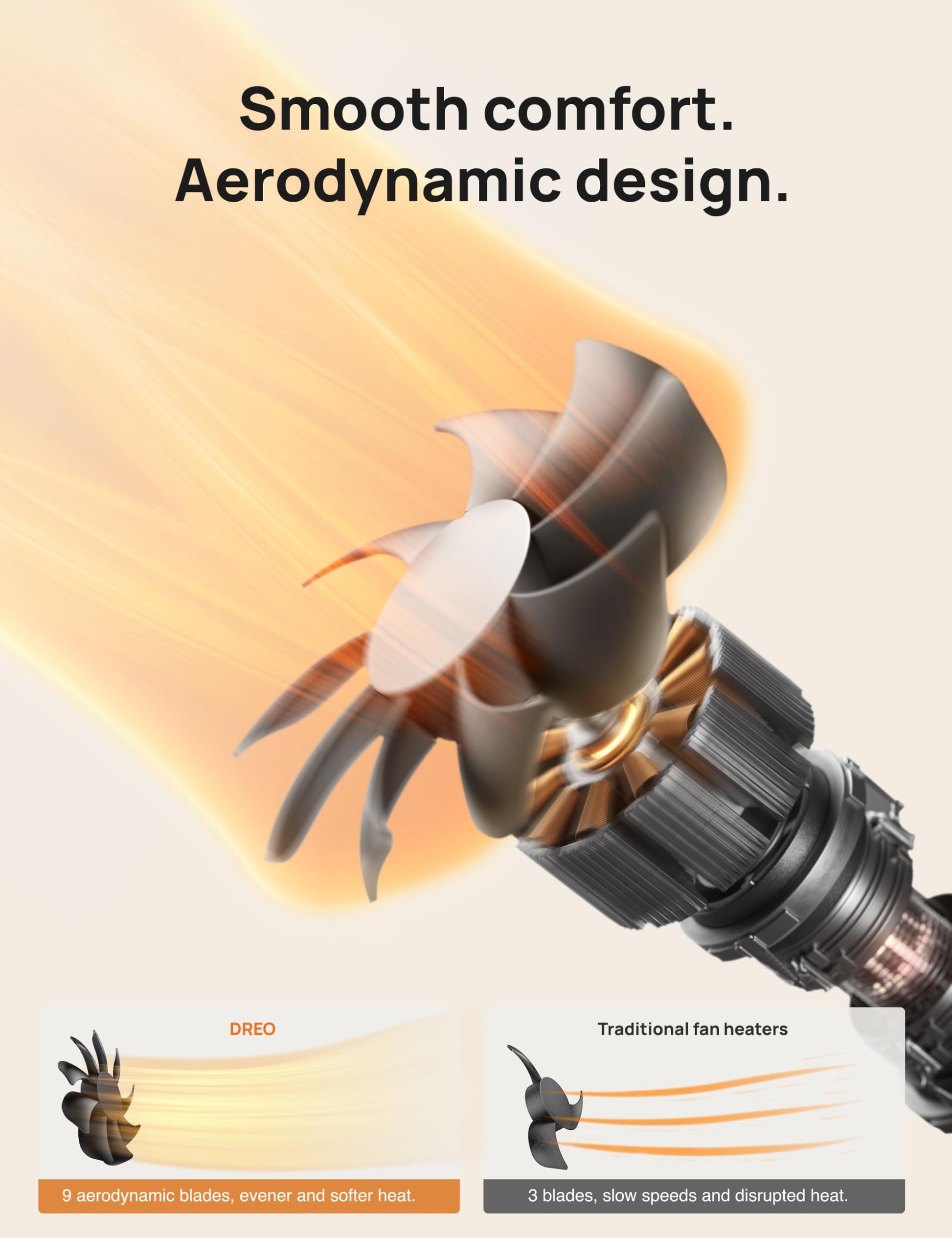 - Quick Heating: Powered by DC motor and 9 blades, this ceramic heater outputs 1500W high-powered PTC ceramic heating, much faster than other traditional electric heaters using AC motor and 3 blades. 3-35℃ adjustable electronic thermostat and LED Display make it a breeze to customize your ambient temperature in cold.