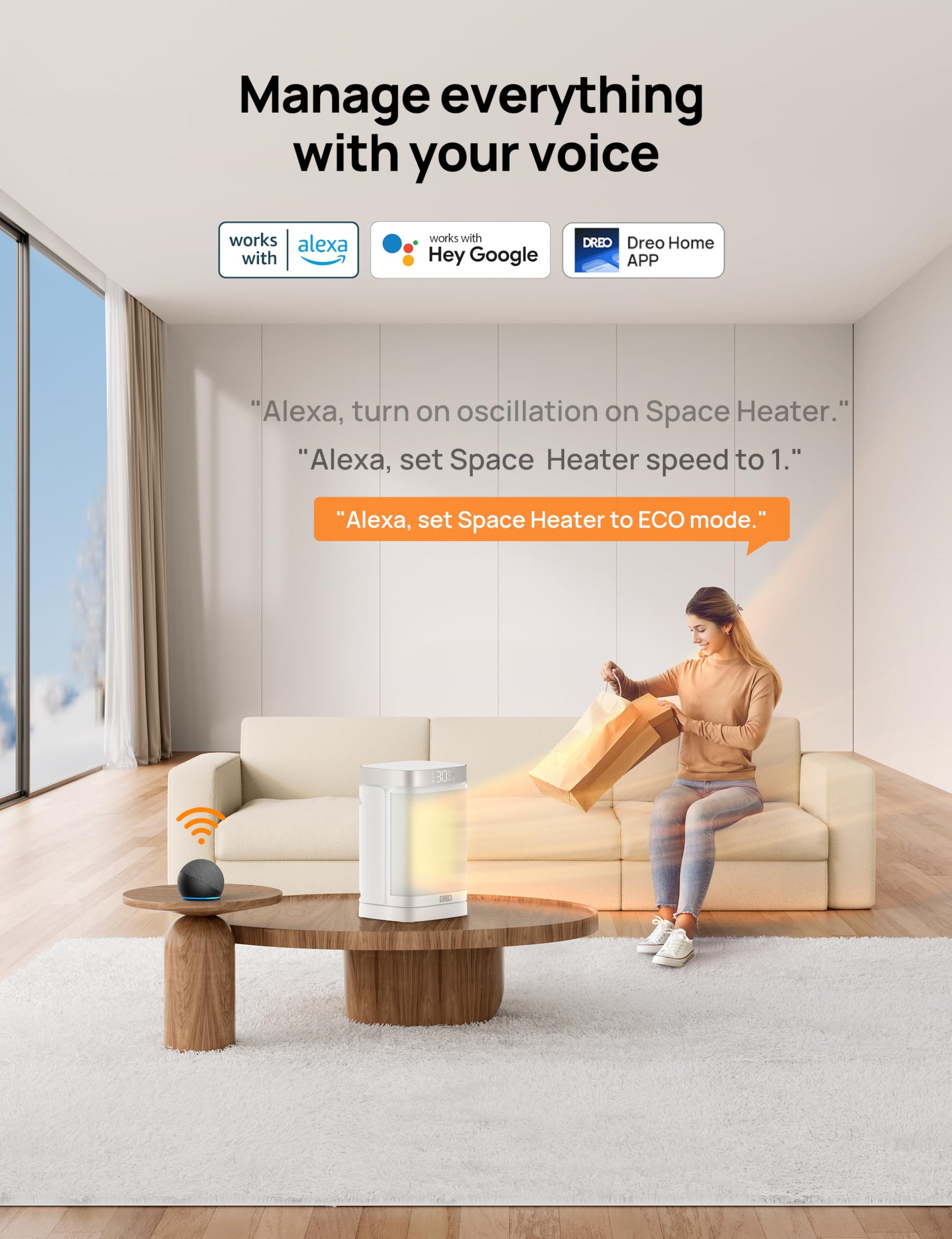 - Energy Saving: Features 4 modes (High, Low, ECO, Fan) to personalize your comfort. Energy-saving ECO mode adjusts its power based on the temperature around to keep you warm while helping cut down on heating costs.