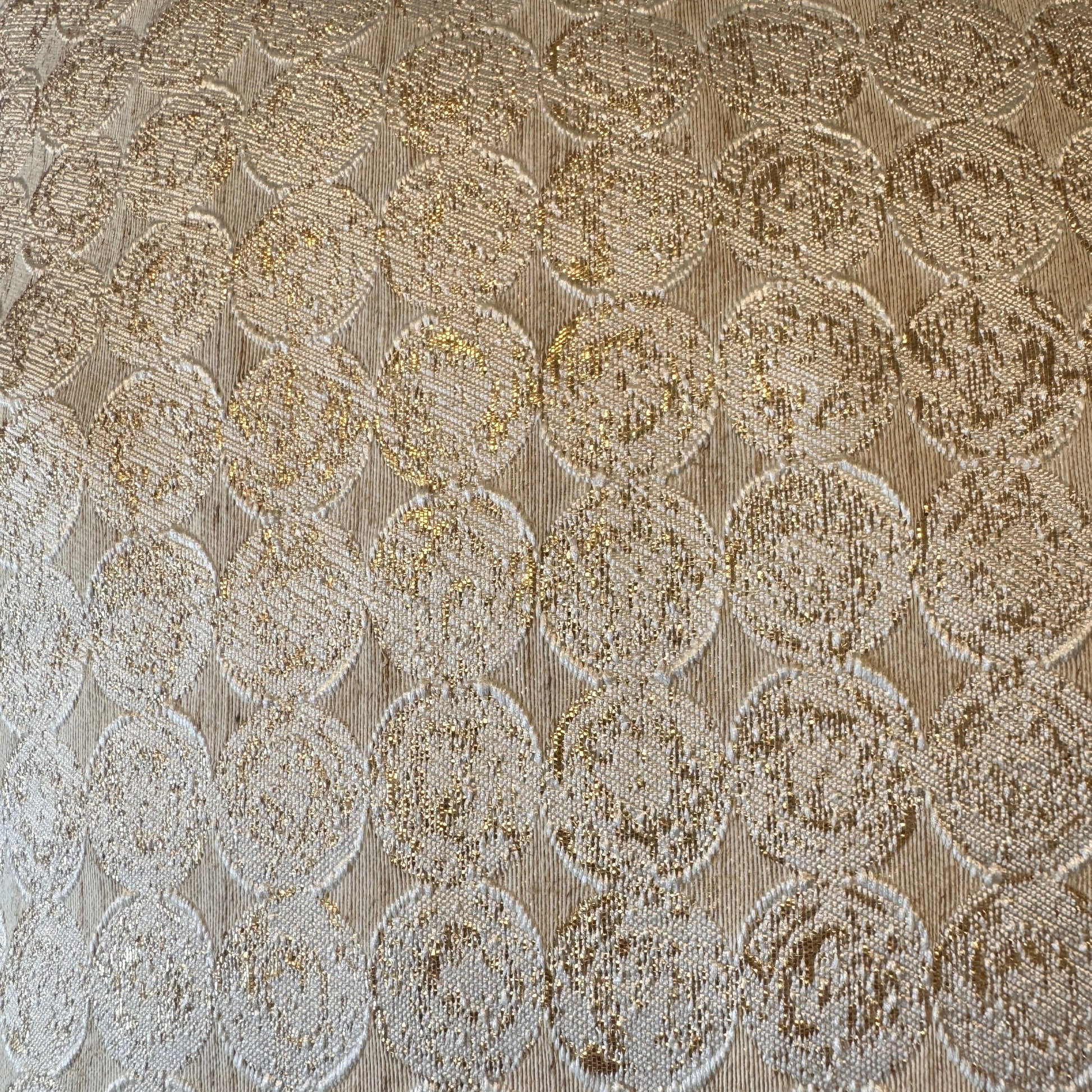 Measuring 50x50cm, this cushion features an elegant textured pattern in soft gold tones with a shimmering metallic finish.