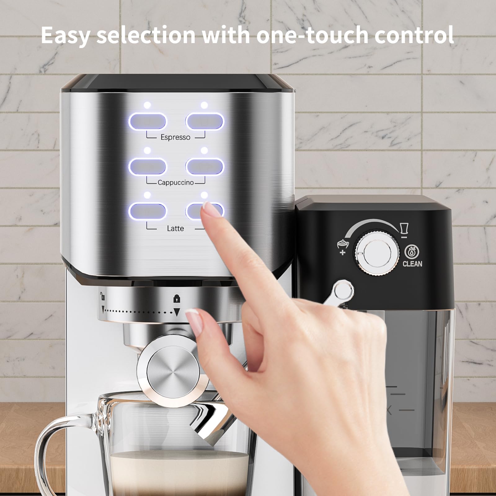 - High Technology and Quality: Coffee machine with 20Bar italian pump delivers the perfect pressure, 1350W and 900W dual heating bodies, shorter time extract more robust coffee flavours