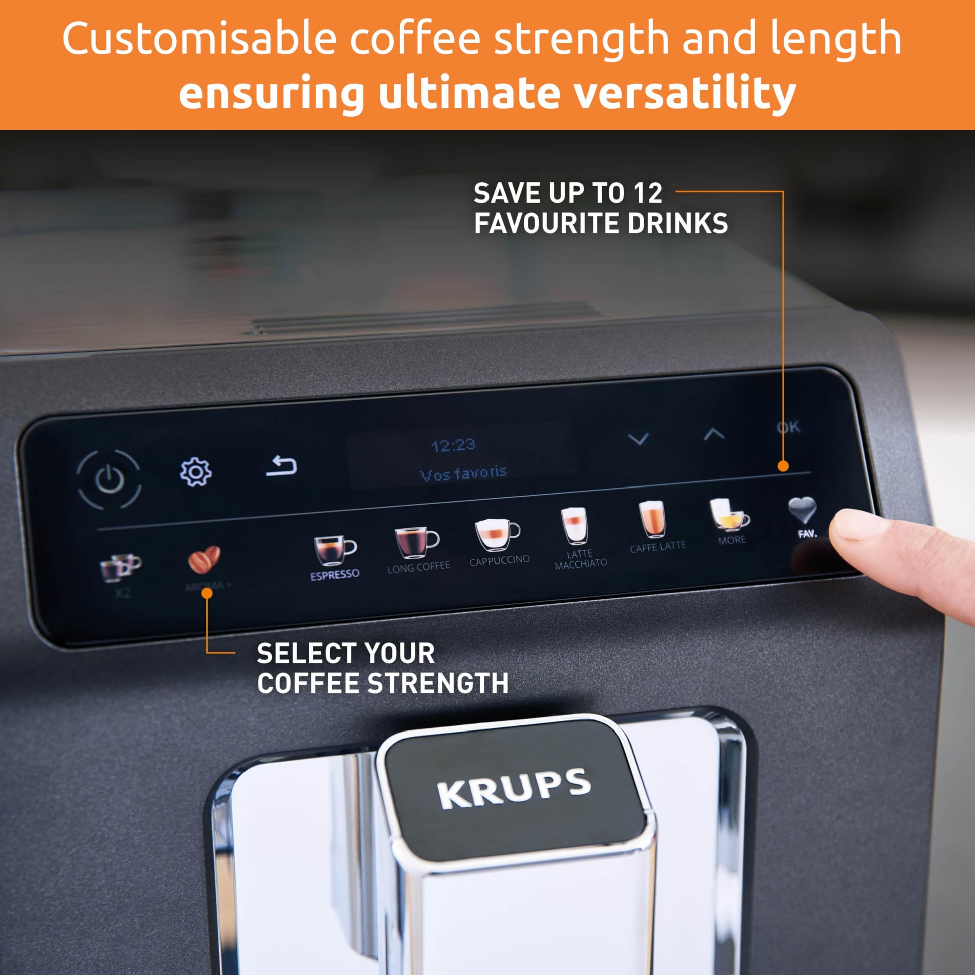 KRUPS EA895N40 Evidence One Automatic Coffee Machine, Espresso, Cappuccino, 2.3 liters, Meteor Grey, 17 Drink Options, Bean to Cup