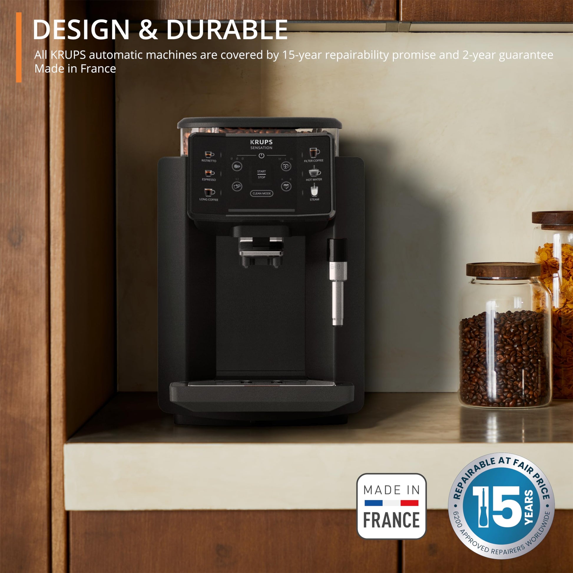- Customisable Grind and Strength: The KRUPS EA895N40 Evidence One offers the freedom to tailor your coffee to perfection. Adjust the grind size and strength according to your preference, ensuring a personalized and flavourful cup of espresso or cappuccino every time.