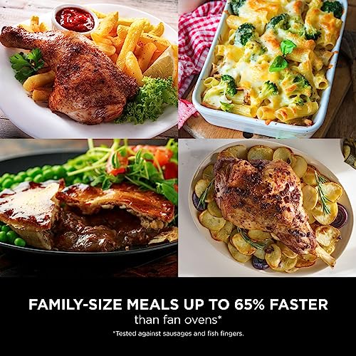 - EXTRA-LARGE CAPACITY: Cook up to 8 portions. Each drawer fits up to 1.4kg fries or a 2kg chicken. Cook up to 75% faster than fan ovens* (*Tested against fish fingers and sausages, including preheat)
