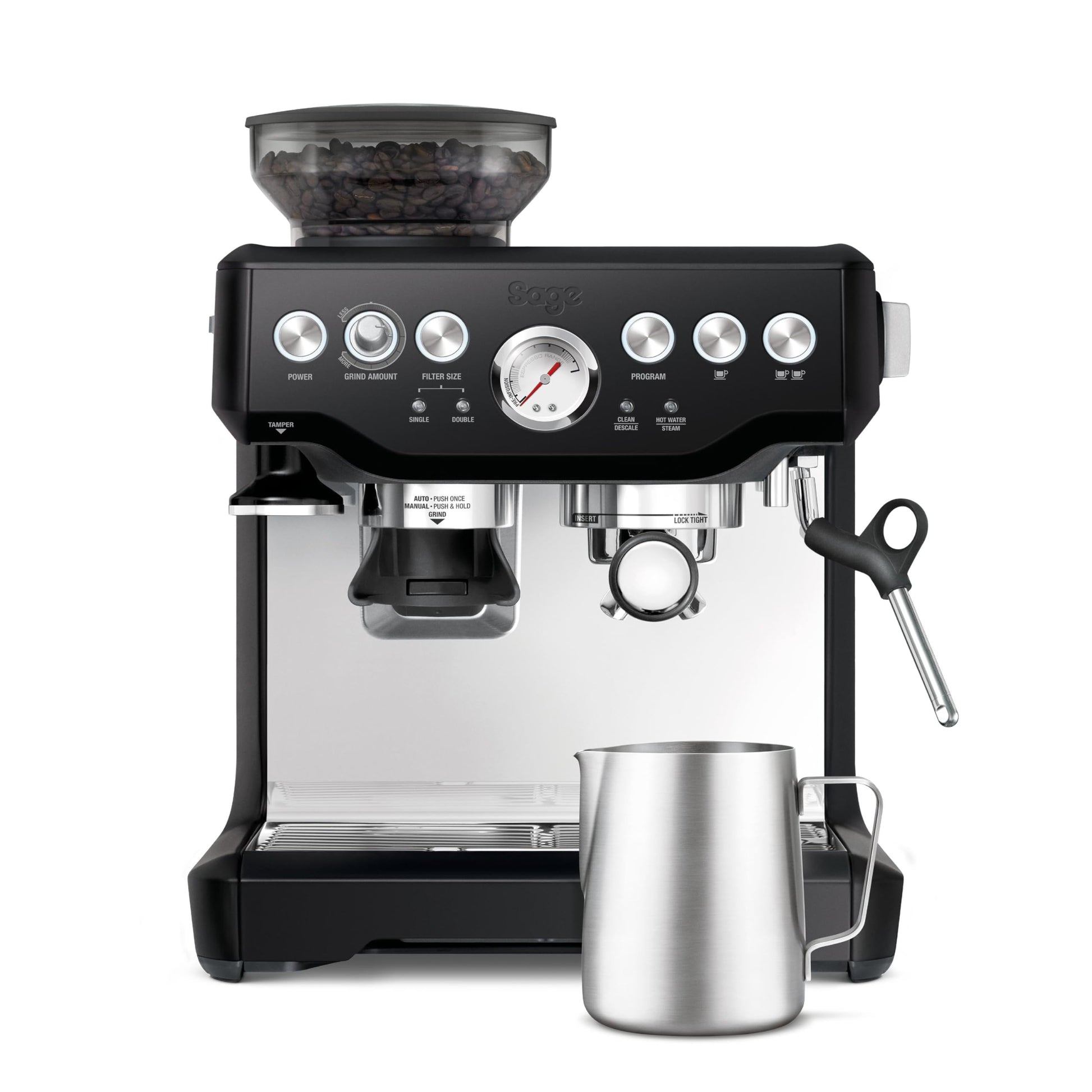 Sage - The Barista Express - Bean to Cup Coffee Machine with Grinder and Milk Frother, Black Gloss