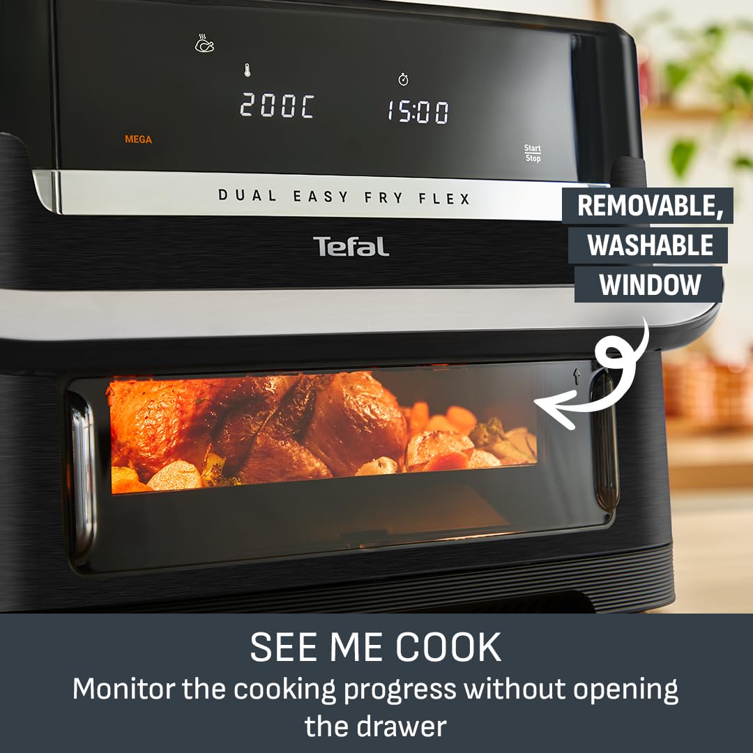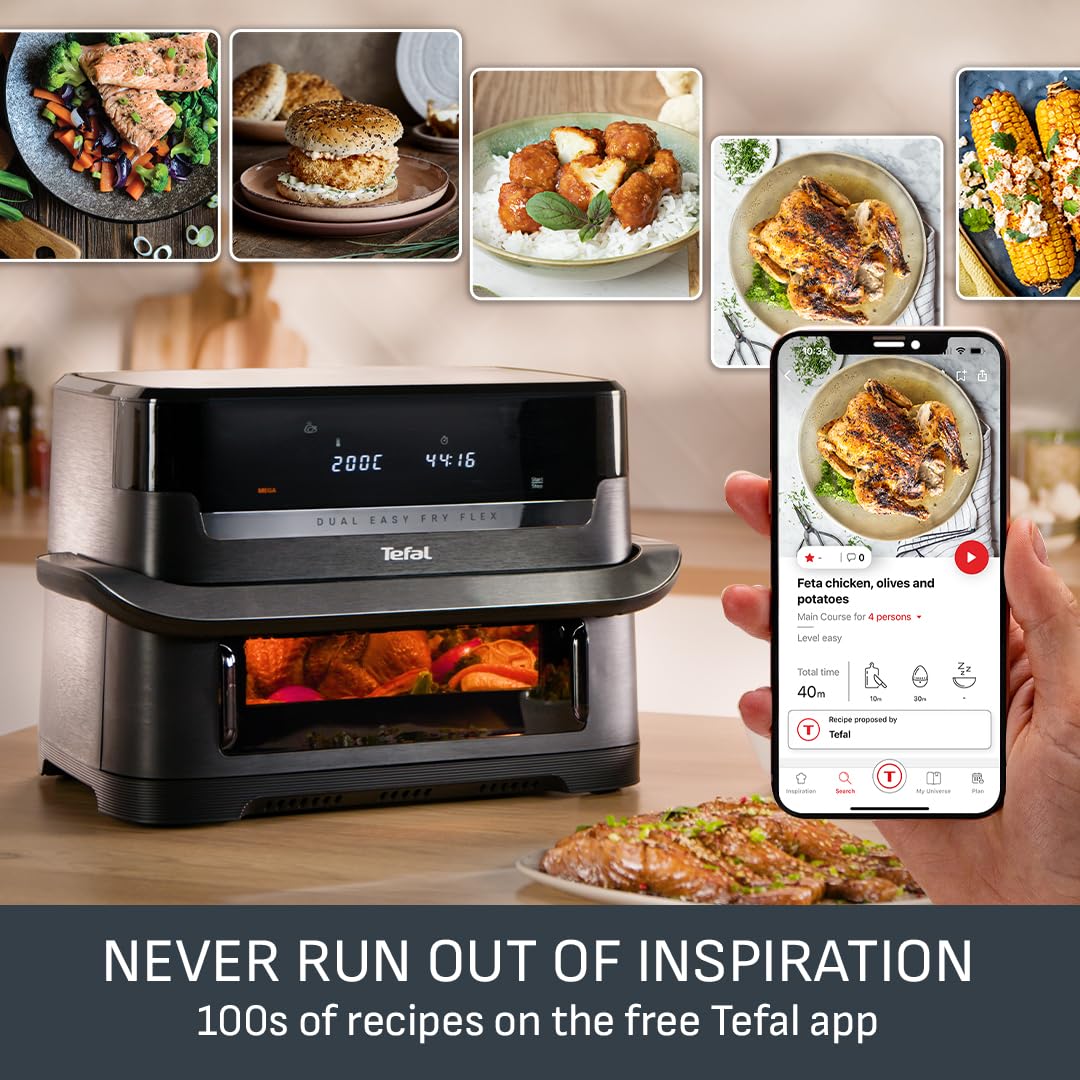- COOK FASTER AND SAVE ENERGY: Get that crispy crunch and taste you love in less time. With the Easy Fry Dual air fryer you can prepare a wide variety of meals 40% faster than in a conventional oven, whilst saving up to 70% energy.40% faster cooking with less energy than a conventional oven, external test cooking 1000g of frozen French fries, compared to a Tefal convection oven. | Up to 70% energy saving with air fryers by Tefal vs conventional oven Energy Class A. Tests conducted in 2022 on frozen fries.