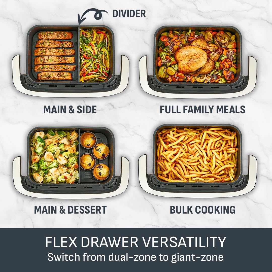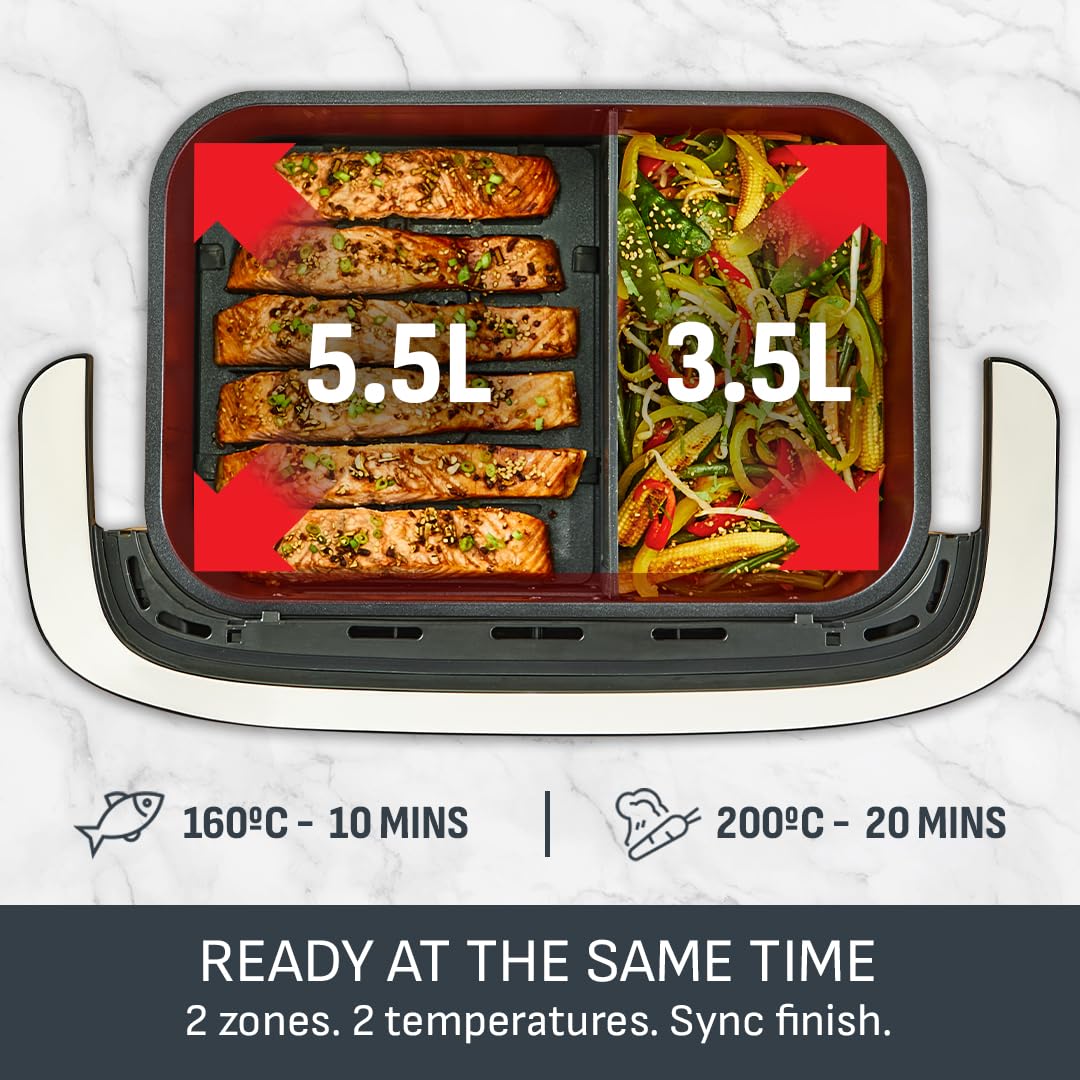 - SINGLES OR DOUBLES: The small drawer is perfect for single portions. Extra guests? Double up with the XL drawer – the combined 8.3L capacity feeds up to 8! Or cook a main and a side and SYNC the finish to ensure everything is ready at the same time.