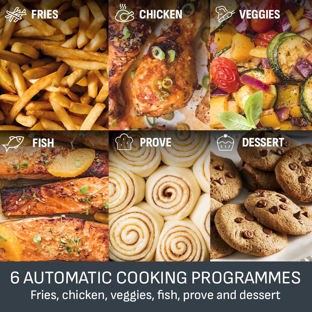- NO PREHEAT NEEDED: Exclusive Extra Crisp air frying technology means there's no need for preheating. Simply choose from 8 automatic programs or set your own temperature (40-200°C) and time (