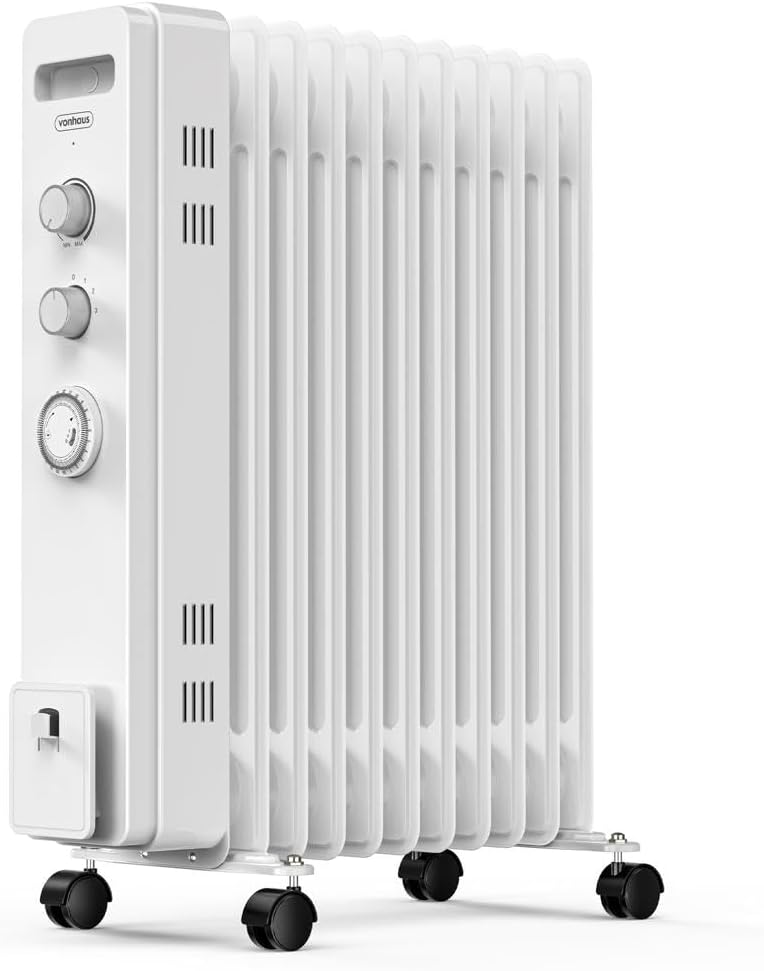 - UPGRADED 11 FIN DESIGN: Create optimal warmth with the VonHaus white oil filled radiator, powered by ThermoDynamic engineering. The enhanced fins boast an increased surface area and five oil channels for higher heat dissipation.